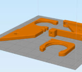 Die Orientierung im 3D-Drucker sollte wie abgebildet sein. So wird dann kein Stützmaterial benötigt.  Es gibt zwei kleine Stellen am Saugrohr, wo das Stützmaterial in der Konstruktion enthalten ist. Diese können leicht weggebrochen werden können. Die Absaugung besteht aus fünf Teilen (rot) und ein paar Schrauben, die man eigentlich sowieso zu Hause hat bzw. bei der Maschine dabei sind.