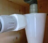 Der Sauger hat richtig Gas, aber die Saugbeutel sind extrem teuer. Darum wurde er mit einem Zyklon erweitert (ca. €38.-) was in etwa 7 Beuteln entspricht. Ich habe den Dust Comander bei Amazon* gekauft. Dieser Zyklon passt meiner Meinung nach von der Leistung her sehr gut zum Sauger, aber die Durchmesser der Schlauchanschlüsse und des Zyklons haben absolut nichts miteinander zu tun.